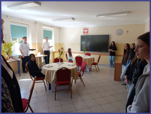 Po przerwie kulturowej uczniowie wrócili do zajęć zawodowych. Logistycy zajmowali się organizacją działań transportowych i załadunku, a grupa gastronomiczna przygotowywała oraz serwowała różnego rodzaju dania i przekąski.