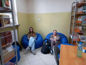 4. Przy biurku bibliotekarza może przebywać tylko jedna osoba. Jednocześnie w bibliotece może przebywać nie więcej niż 1 osoba (włącznie z nauczycielem bibliotekarzem).