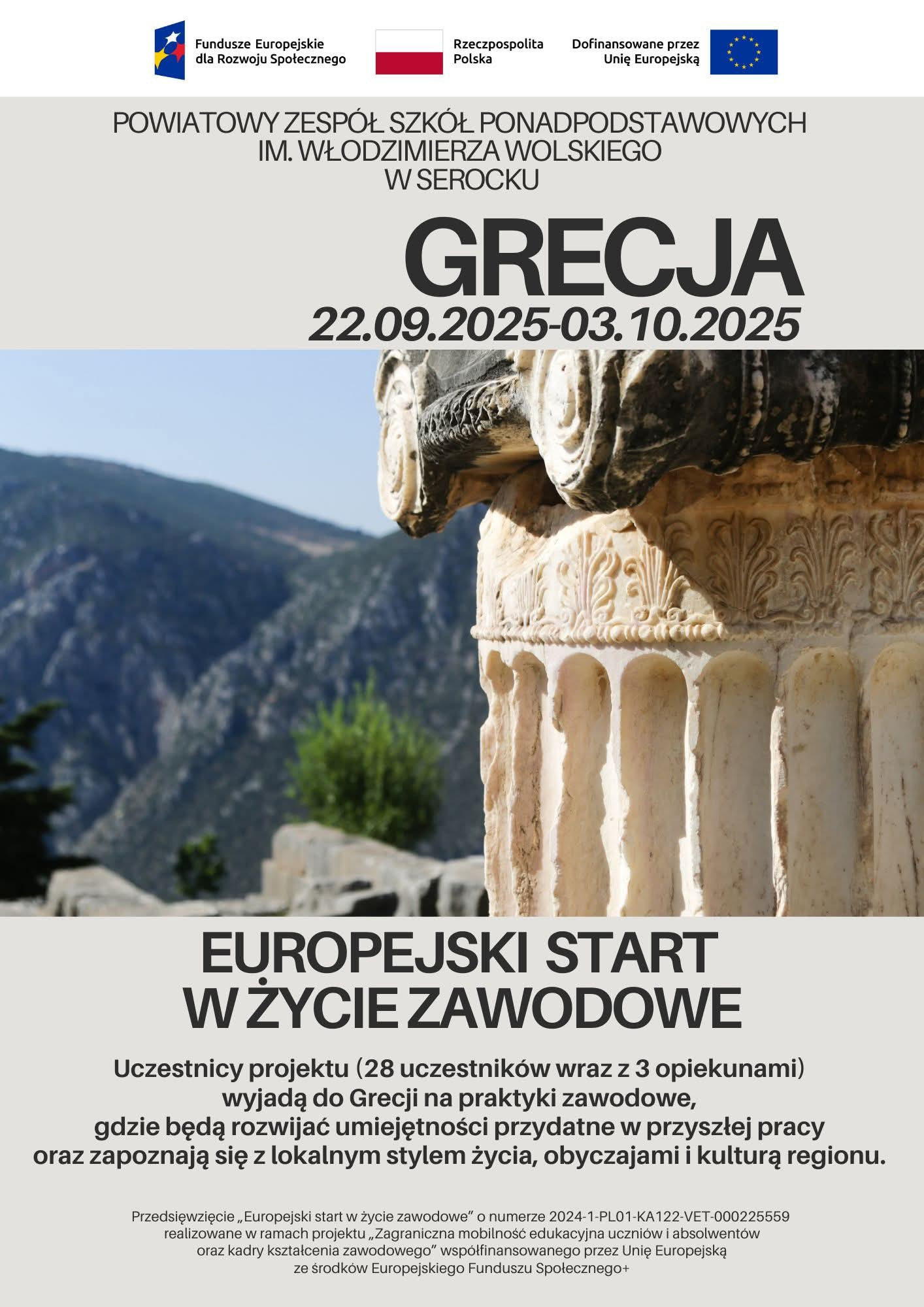 Rozpoczęły się zajęcia przygotowawcze uczestników wyjazdu do Grecji w ramach przedsięwzięcia "Europejski start w życie zawodowe" realizowanego w programie "Zagraniczna mobilność edukacyjna uczniów i absolwentów oraz kadry kształcenia zawodowego" współfinansowanego przez Unię Europejską ze środków Europejskiego Funduszu Społecznego. Celem zajęć było wspieranie rozwoju umiejętności językowych, kulturowych i społecznych uczniów.