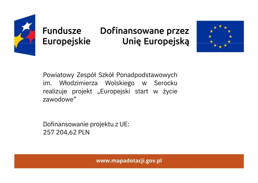 Przedsięwzięcie „Europejski start w życie zawodowe” o numerze 2024-1-PL01-KA122-VET-000225559 realizowane w ramach projektu „Zagraniczna mobilność edukacyjna uczniów i absolwentów oraz kadry kształcenia zawodowego” współfinansowanego przez Unię Europejską ze środków Europejskiego Funduszu Społecznego+.